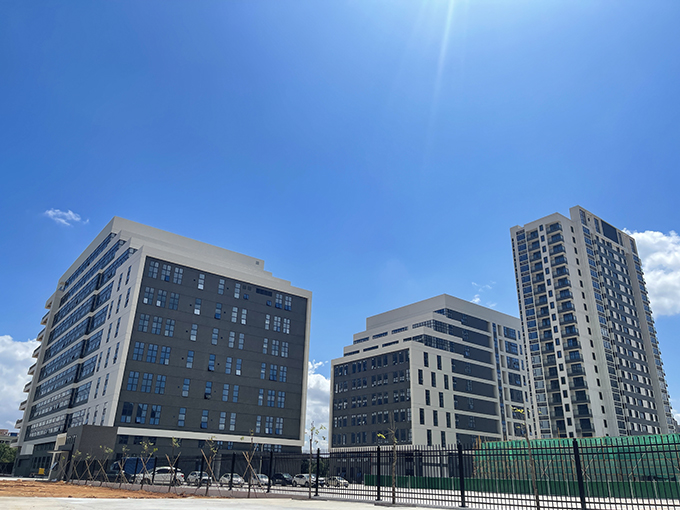 該項目總投資額為5億,占地面積45000平方米,總建筑面積150000平方米,其中計容面積143786平方米。整個(gè)項目包含兩幢二十層宿舍樓,四幢廠(chǎng)房及地下室。宿舍樓設計為高級人才公寓,每層十二套,每套約30-50平方米,均配獨立陽(yáng)臺。廠(chǎng)房設計為露臺式花園廠(chǎng)房,四幢廠(chǎng)房分別為36000平方米、28000平方米、36000平方米、17500平方米。地下室設計為5000平方米的停車(chē)場(chǎng)。項目分兩期推進(jìn),第一期已經(jīng)于2023年6月建成并投入了使用,包含一幢宿舍樓,兩幢廠(chǎng)房及2600平方的地下室車(chē)庫。剩余工程作為第二期,計劃2024年開(kāi)始動(dòng)工興建,2025年投入運營(yíng)。