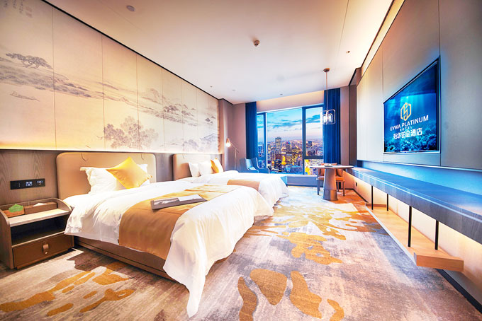 The hotel has 296 comfortable and deluxe rooms. The guest rooms take the lead in using the intelligent systems and bring more intelligent, modern and surprise experience to guests. Hotel rooms are equipped with wireless WIFI, digital TV, mini bar, intelligent mini speaker, Moen bathroom, brand mattress and other facilities. The hotel provides24-hour private butler service, courteous reception of executive floor, etc.